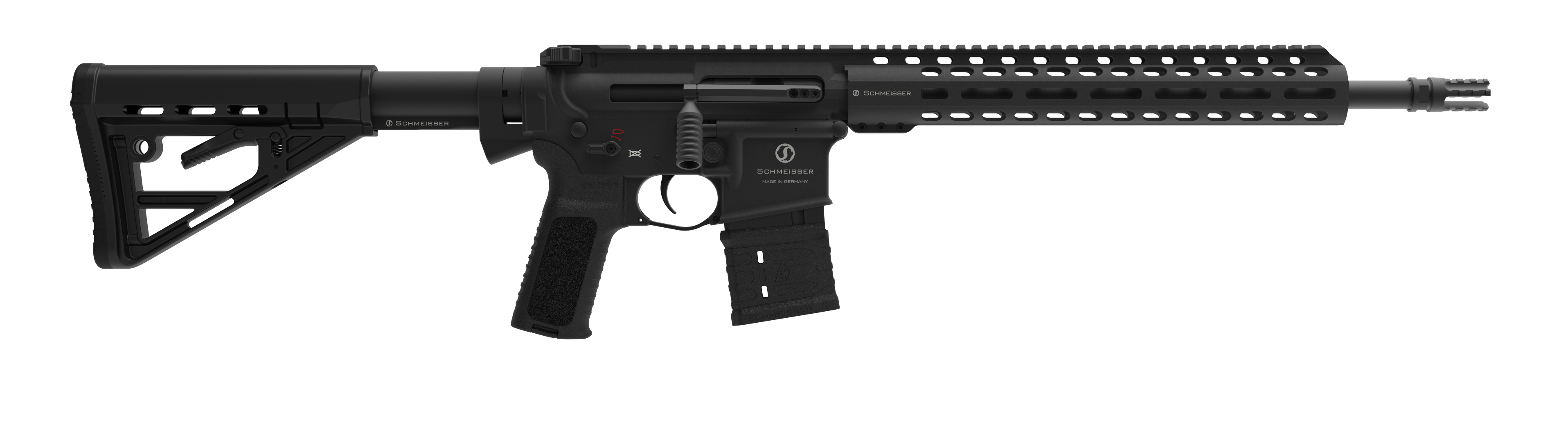 Die Schmeisser Straight Pull hat einen freischwingenden Lauf mit einem schlanken M-Lok-Vorderschaft. Der Two Stage Trigger gewährleistet eine besonders gleichmäßige Charakteristik. Sowohl Sicherung, Magazinauslöser, Durchladehebel als auch Verschlussfang sind beidseitig ausgelegt. Auslieferung erfolgt serienmäßig mit 10 Schuss Magazin.